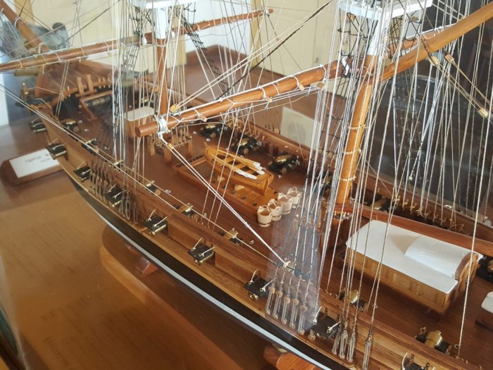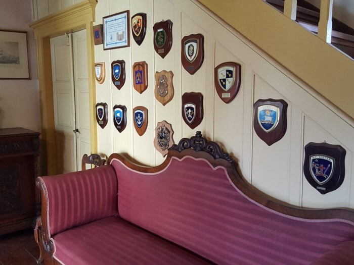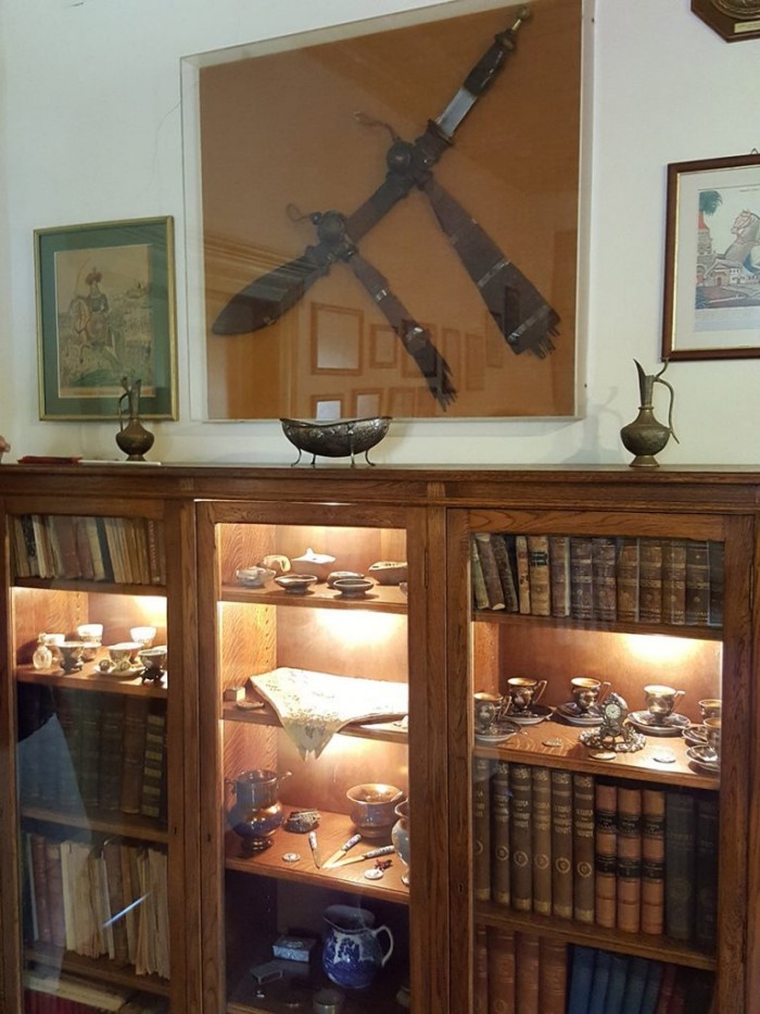 Στη βιβλιοθήκη, μεταξύ σπανίων βιβλίων, η χρυσοκέντητη μαντίλα της καπετάνισσας. Επίσης, ένα μενταγιόν της, αναμνηστικά μετάλλια, ωραιότατες πορσελάνες και συλλογή από αρχαίους λύχνους. Ανηρτημένη στον τοίχο βρίσκεται η τουρκική άδεια (φιρμάνι του Σουλτάνου) της κατασκευής του πλοίου «Αγαμέμνονα», με το σχέδιο του στην πίσω πλευρά.