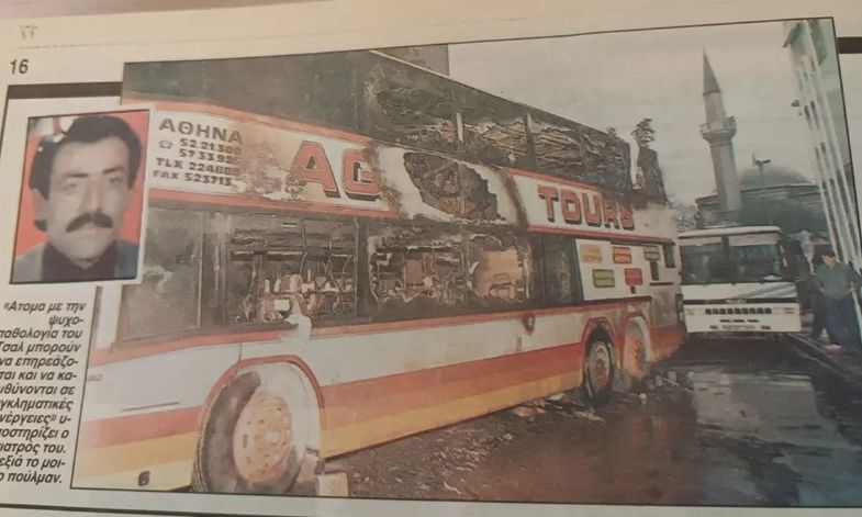 Τρίτη του Πάσχα, 9 Απριλίου 1991, οι περισσότεροι από το γκρουπ των Ελλήνων μπαίνουν στο λεωφορείο και ετοιμάζονται για μία βόλτα στην αγορά της Κωνσταντινούπολης. Την ίδια ώρα ο Καντίρ Τσαλ, Τούρκος πολίτης και σύμφωνα με κάποιες μαρτυρίες με ψυχολογικά προβλήματα, μπήκε στο λεωφορείο μαζί με τους επιβάτες. Πάνω στην αναστάτωση και τον συνωστισμό, κανείς δεν παρατήρησε πως ο Καντίρ Τσαλ είχε δεμένο στη ζώνη του με σχοινί ένα μπιτόνι με βενζίνη. Όταν έφτασε στον πάνω όροφο του λεωφορείου άδειασε τη βενζίνη, έβαλε φωτιά και έφραξε με το φλεγόμενο σώμα του στην πόρτα του οχήματος. Παρανάλωμα του πυρός, ουρλιαχτά και κραυγές. Όσοι κατάφεραν να σπάσουν τα παράθυρα, να βγουν και να σωθούν, περιέγραψαν τη φρίκη που έζησαν… και δεν την έχουν ακόμη ξεπεράσει.