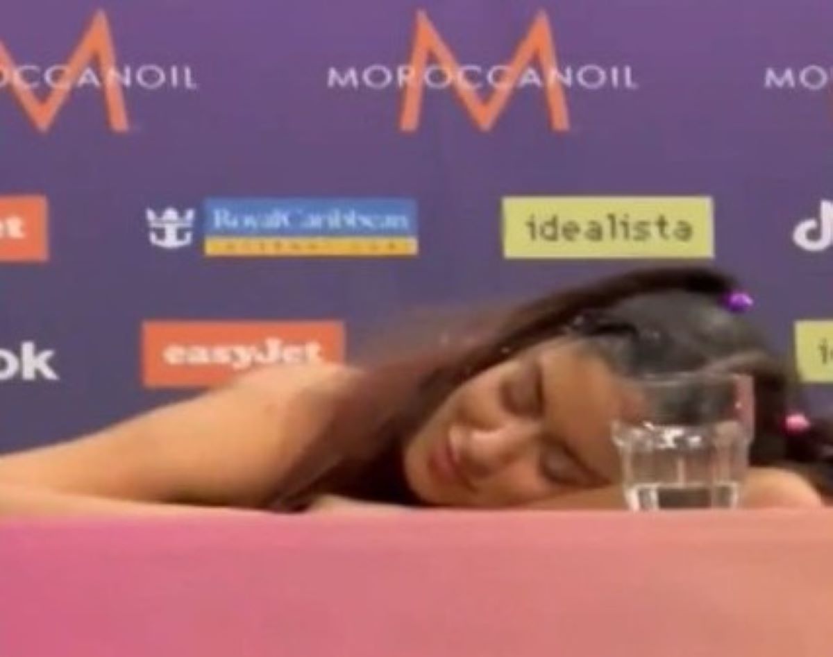 Η Μαρίνα Σάττι και οι εκπρόσωποι των εννέα χωρών, που πέρασαν στον τελικό της Eurovision, από τον β’ ημιτελικό, που διεξήχθη χθες, Πέμπτη, το βράδυ, έδωσαν συνέντευξη Τύπου, με την Ελληνίδα τραγουδίστρια να κάνει γκριμάτσες, ενώ μιλούσε η εκπρόσωπος από το Ισραήλ.