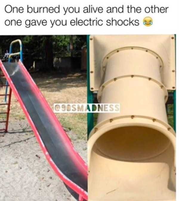 Αυτές οι 2 τσουλήθρες έχουν μείνει ανεξίτηλες στην μνήμη μας. Μπορεί η μία να μας έκαιγε και η άλλη να μας ηλέκτριζε, όμως, δεν σταματούσαμε να τις ανεβοκατεβαίνουμε.