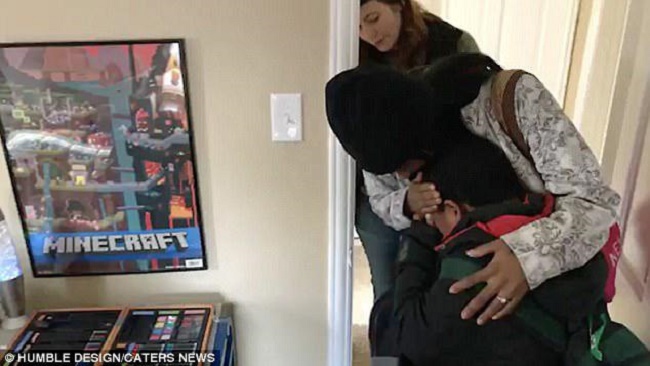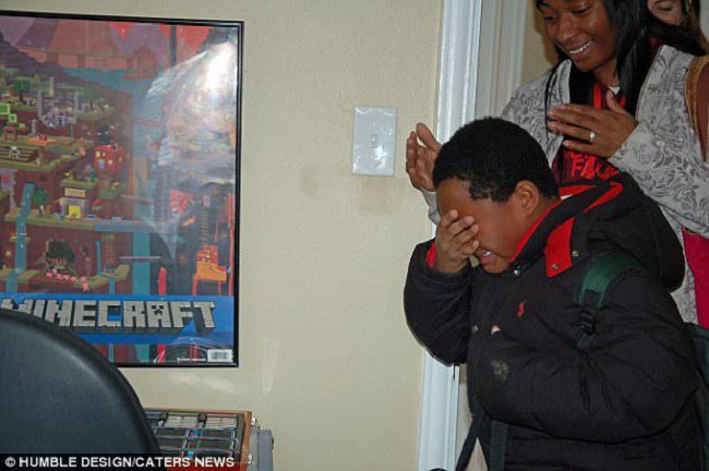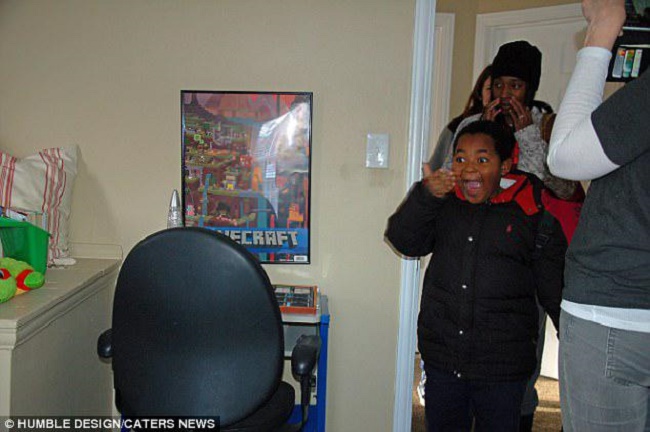 Ο μικρός έμεινε άφωνος όταν αντίκρισε το πλήρες επιπλωμένο και διακοσμημένο δωμάτιό του. Έβαλε κλάματα μέσα στην αγκαλιά της μητέρας του! Ένα γεμάτο δωμάτιο με κρεβάτι, καρέκλες, μαξιλάρια και παιχνίδια. Η χριστουγεννιάτικη ευχή του πήρε σάρκα κι οστά και ήταν πια μπροστά στα μάτια του. Η έκφραση του προσώπου του τα λέει όλα.
