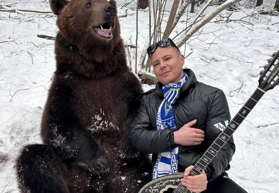 Η ανάρτησή του έχει αφήσει άναυδους τους διαδικτυακούς του φίλους, καθώς απεικονίζεται σε βίντεο, σε χιονισμένο τοπίο να παίζει συρτάκι με το μπουζούκι του και μια μεγάλη αρκούδα να κάθεται δίπλα του… γλείφοντάς του το χέρι αρχικά και έπειτα απολαμβάνει τις πενιές τρώγοντας ήσυχα ήσυχα το «γεύμα» της -που ευτυχώς δεν είναι ο Δημήτρης.