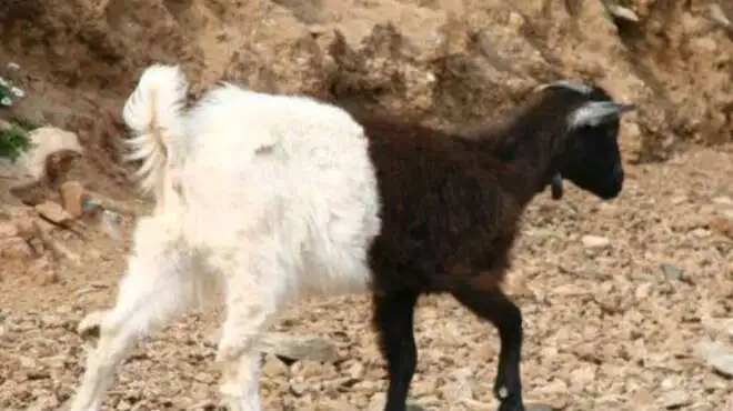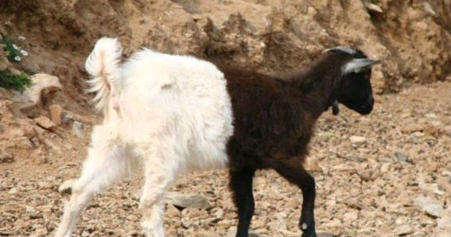 To δίχρωμο κατσικάκι εθεάθη να κόβει βόλτες έξω από τα Βορίζια του Δήμου Φαιστού. Όσοι περαστικοί το είδαν έμειναν έκπληκτοι. Και πως αλλιώς θα μπορούσε να γίνει άλλωστε αφού αυτό το σπάνιο κατσίκι εντυπωσιάζει από το χρωματικό διαχωρισμό στο τρίχωμα του.