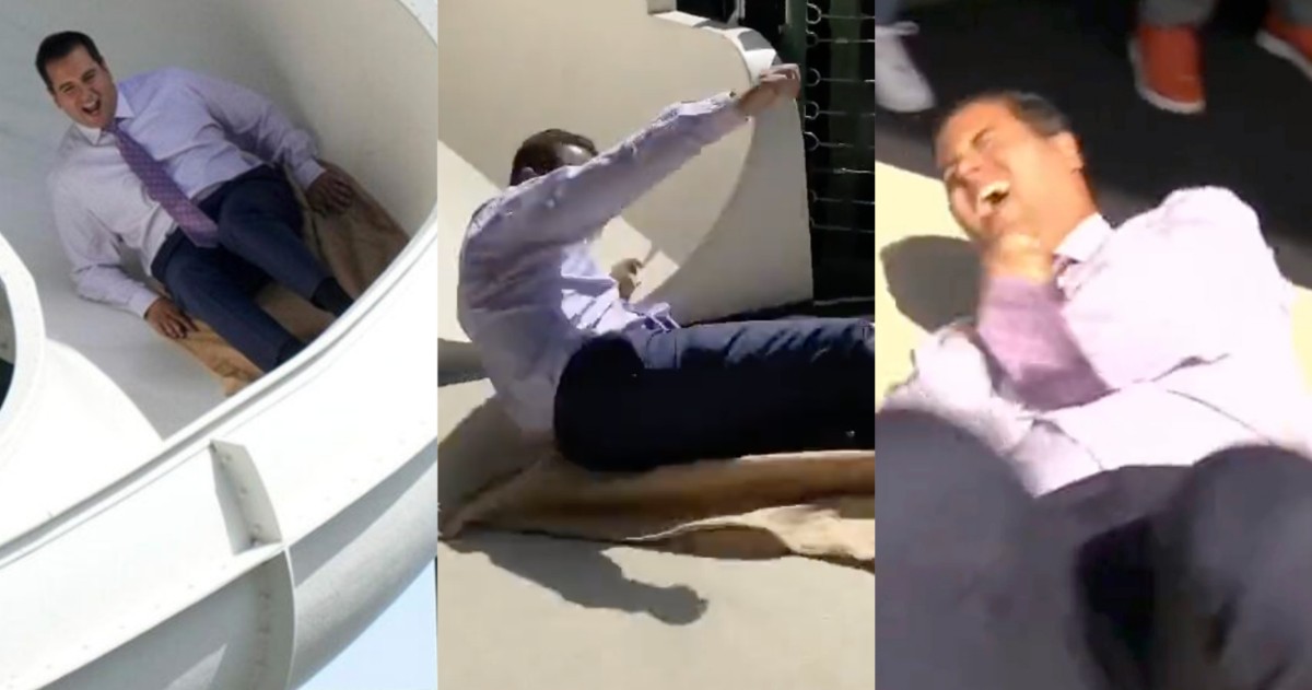 Ο David Vassegh ανυπομονούσε να κατέβει στη διάσημη τσουλήθρα του Bernie’s Chalet στο American Family Field στο Μιλγουόκι του Ουισκόνσιν κατά τη διάρκεια ενός ρεπορτάζ για το παιχνίδι των Dodgers με τους Brewers.