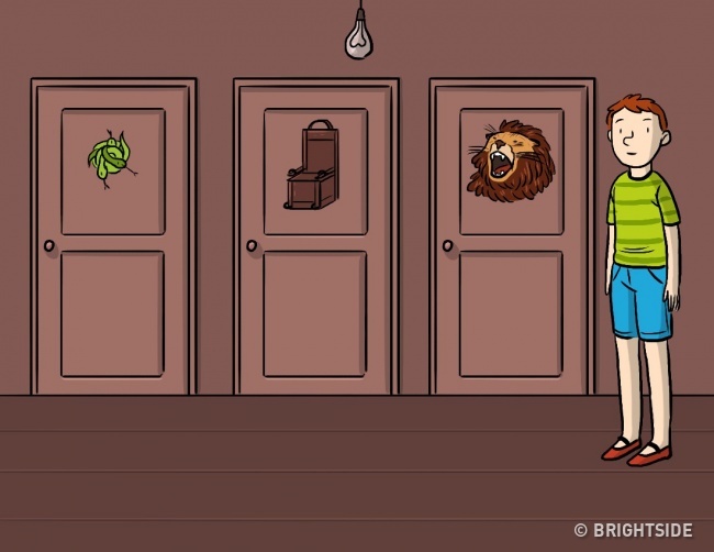Ένα αγόρι περπατούσε στο δάσος και βρήκε μια εγκαταλειμμένη καμπίνα. Αποφάσισε να μπει μέσα. Αφού μπήκε μέσα, η πόρτα έκλεισε πίσω του. Το μέρος ήταν πολύ σκοτεινό. Το αγόρι βρήκε έναν διακόπτη φωτός, αλλά δεν υπήρχε ηλεκτρισμός. Και τότε, άκουσε μια φωνή που του είπε ότι θα μπορούσε να βγει από την καμπίνα μέσα από μια από τις τρεις πόρτες.