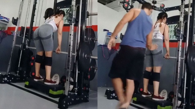 Η 22χρονη που λατρεύει τη γυμναστική ονομάζεται Φερν και καταγράφει τον εαυτό του να κάνει καθίσματα όταν ένας άντρας την παρενοχλεί σεξουαλικά, αγγίζοντας τους γλουτούς της.