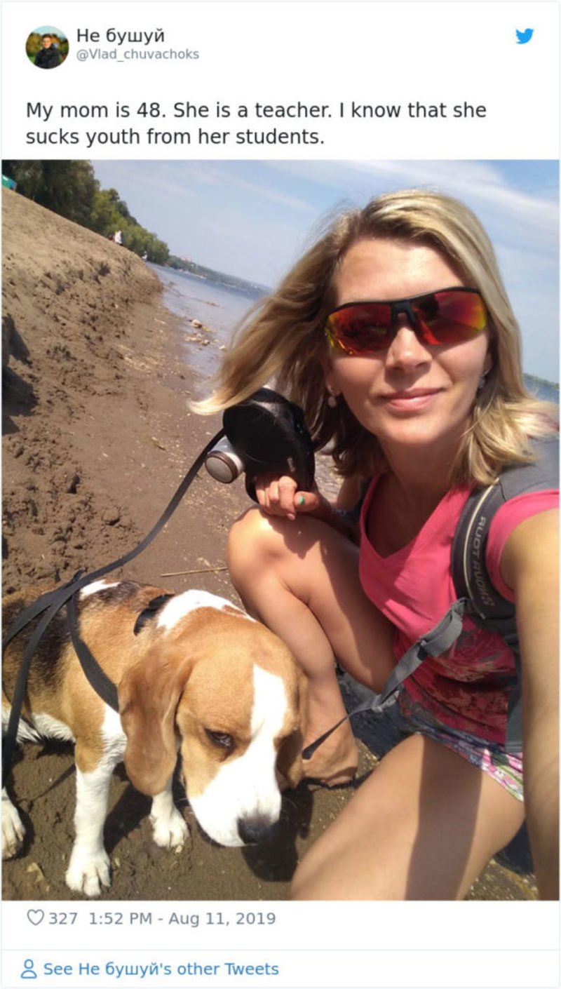 Η μαμά μου είναι 48. Είναι δασκάλα. Ξέρω ότι ρουφά νεότητα από τους μαθητές της.