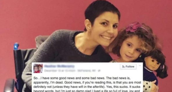 Η Χέδερ, άφησε την τελευταία της πνοή στις 14 Δεκέμβρη, όμως είχε φροντίσει να αφήσει γράμματα στον σύζυγό της και στην κόρη της. Ο σύζυγός της Τζεφ, μία μέρα πριν το θάνατό της αποφάσισε να τα μοιραστεί στο Facebook και να κοινοποιηθούν από άλλους χρήστες χιλιάδες φορές.