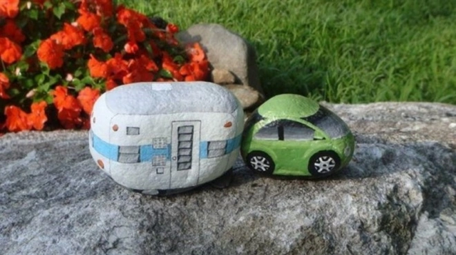 Τα υπέροχα βανάκια της Volswagen ζωντανεύουν επίσης σε διάφορα χρώματα και σχέδια, τα οποία τραβούν την προσοχή μικρών και μεγάλων. Μετά τη βροχή, πάντοτε εμφανίζεται ένα ουράνιο τόξο. Το ίδιο συμβαίνει και στην πέτρα του Έλληνα καλλιτέχνη, ο οποίος φιλοτιμήθηκε να δώσει μορφή σε ένα ουράνιο τόξο. Τα σχέδια του είναι πολλά, όμορφα και έχουν προσεγγίσει κόσμο από διάφορα μέρη του πλανήτη.