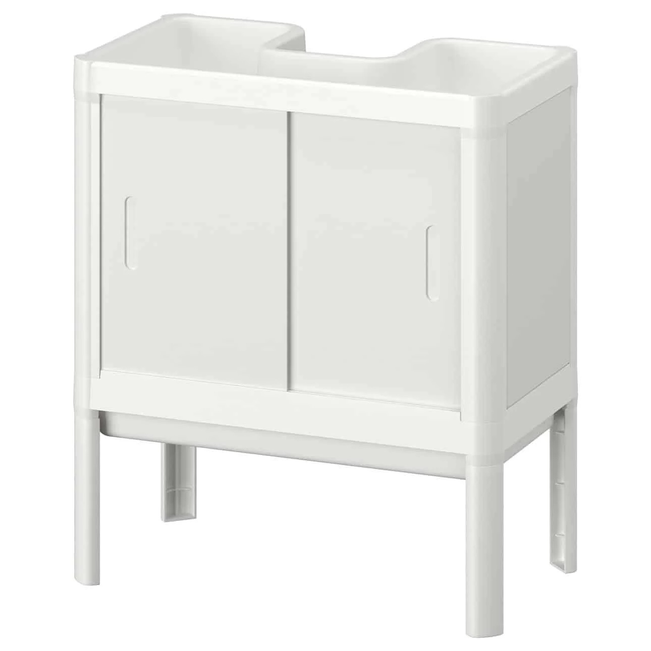 Το συγκεκριμένο μοντέλο που βρήκαμε στα καταστήματα ΙΚΕΑ είναι λευκό και είναι ιδανικό για μικρότερα μπάνια, καθώς το κύριο ντουλάπι έχει πλάτος μόλις 44 εκ. Προσφέρει αρκετό χώρο για ράφια, καθώς και χώρο για σωληνώσεις στο πίσω μέρος του ντουλαπιού. Είναι το κατάλληλο σημείο για να αποθηκεύσετε το χαρτί τουαλέτας ή τα υγειονομικά προϊόντα που συνήθως καταλαμβάνουν χώρο.