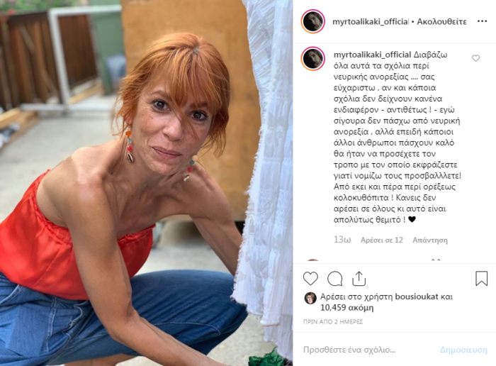 Μυρτώ Αλικάκη: Ακολουθεί αναλυτικά η ανάρτηση της ηθοποιού στο Instagram για τα σχόλια της νευρικής ανορεξίας