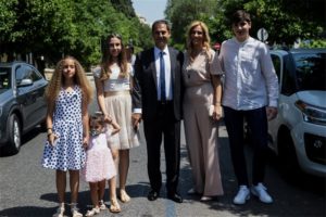 Ο υφυπουργός Ανάπτυξης Χρίστος Δήμας, συνοδευόμενος από την οικογένειά του