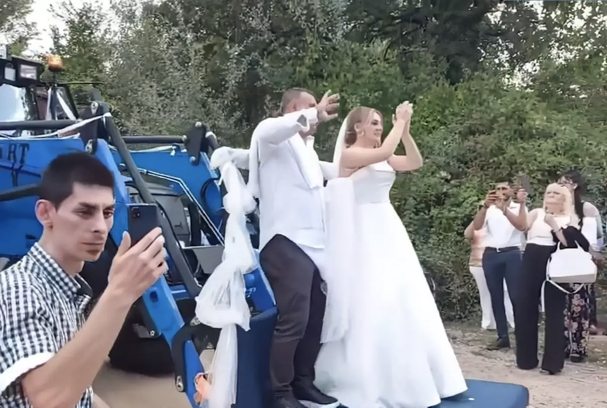 Ένα τρακτέρ-γίγας, στολισμένο με λευκά τούλια, και μια νύφη πανέμορφη στο παραμυθένιο νυφικό της, έκαναν αίσθηση σε γάμο που πραγματοποιήθηκε σε χωριό της Κοζάνης. Με αυτόν τον εντυπωσιακό τρόπο, η Ειρήνη έφτασε στην εκκλησία για τον γάμο της.