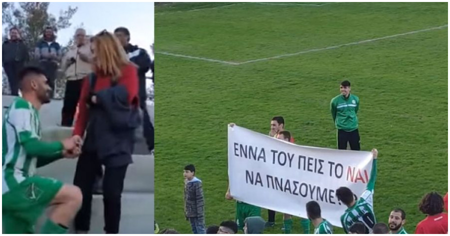 Μπορεί η Ομόνοια Ψευδά να πήρε τη νίκη με ανατροπή, ωστόσο αυτό που έμεινε από το συγκεκριμένο ματς, ήταν η πρόταση γάμου του ποδοσφαιριστή Παναγιώτου.