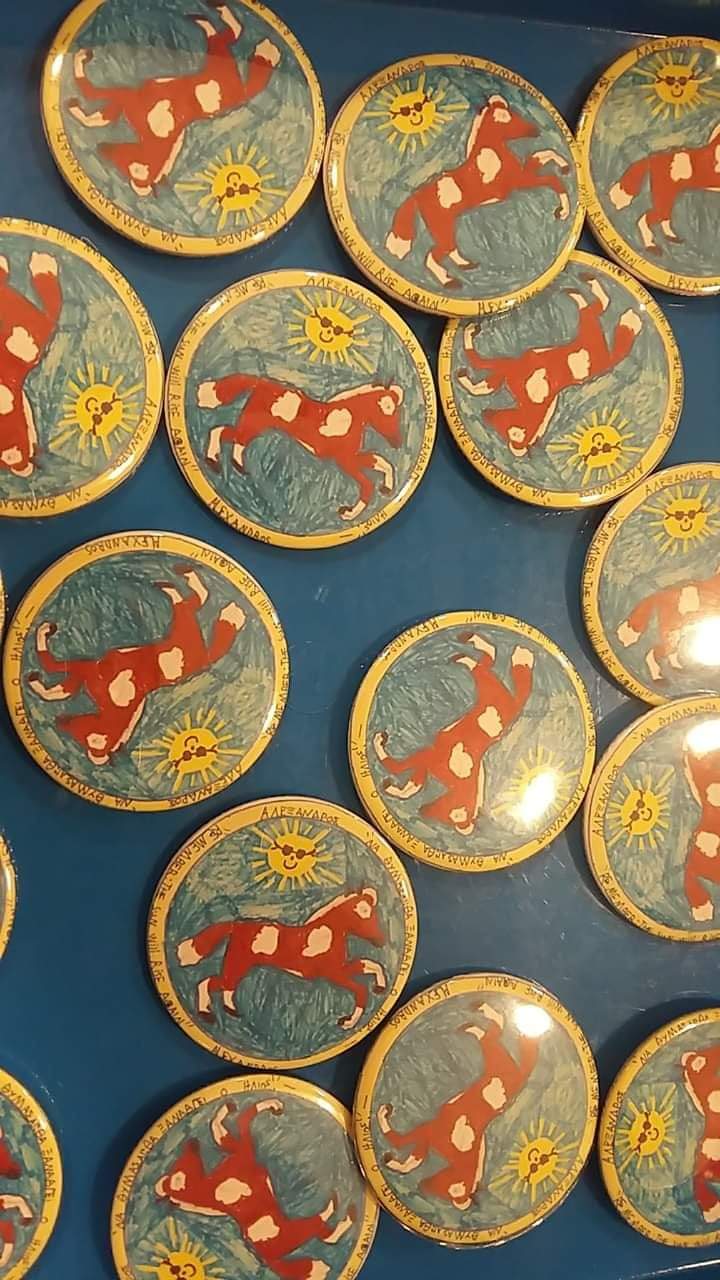 -Ενώ βρισκόμασταν στο εξωτερικό για τη θεραπεία του, και μετά από προτροπή του μπαμπά ,αποφάσισε να φτιάξει ένα μετάλλιο για τον ίδιο και για όλα τα παιδιά που αγωνίζονται .Όταν τον ρώτησαν τι θα ζωγραφίσει πάνω ,με κοίταξε με αγάπη και είπε :«Ένα άλογο!» .Ήξερε πως ήταν τ’ αγαπημένο μου ζώο !Έπειτα τον ρώτησαν :«Ποιο θα είναι το μήνυμα σου ;»,κι εκείνος απάντησε: