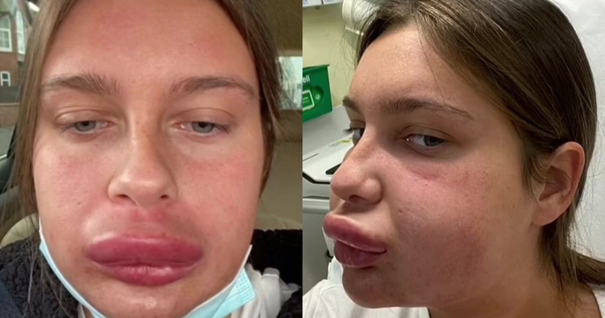 Σοκάρει η εικόνα μιας 23χρονης που πήγε σε κλινική να διορθώσει τα χείλη της και αντ’ αυτού βγήκε πρησμένη σε όλο της το πρόσωπο.
