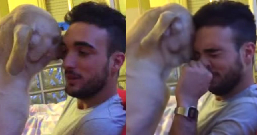 Ο σκύλος με όνομα Ettore, ορμάει στην αγκαλιά του Ιταλού ιδιοκτήτη του και τον ικετεύει να τον συγχωρέσει, διότι έκανε κάποια σκανδαλιά.