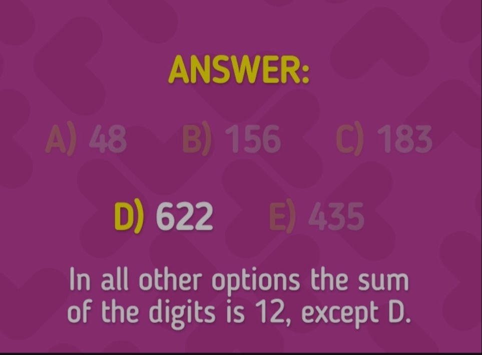 *Σε όλες τις υπόλοιπες επιλογές το αποτέλεσμα των ψηφίων είναι 12, εκτός από την επιλογή D.