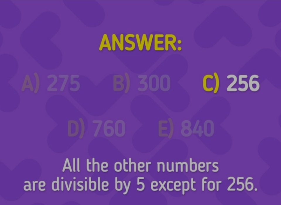 *Όλοι οι άλλοι αριθμοί διαιρούνται με το 5, εκτός από το 256.