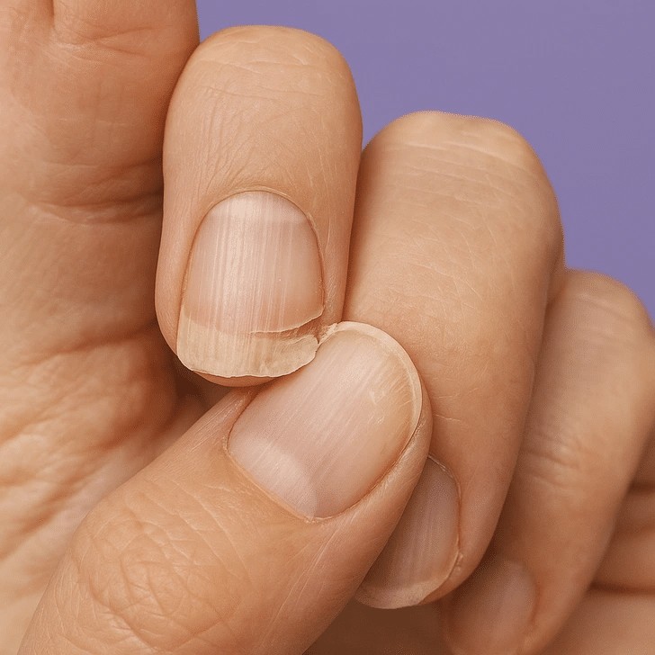 Ξηρά, εύθραυστα νύχια – Τα νύχια μπορεί να γίνουν τραχιά, να έχουν ραβδώσεις ή να αποκολληθούν από την κοίτη του νυχιού.