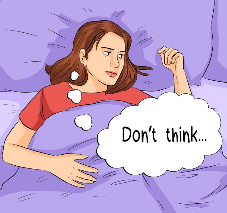 Οι ειδικοί λένε ότι αυτό το τέχνασμα λειτουργεί σαν μαγικό ξόρκι. Χρειάζεστε 120 δευτερόλεπτα για να ολοκληρώσετε τη μέθοδο. Πείτε στον εαυτό σας, “Μην σκέφτεσαι” ξανά και ξανά. Τα τελευταία 10 δευτερόλεπτα πρέπει να είναι το σημείο που θα αρχίσετε να κοιμάστε.