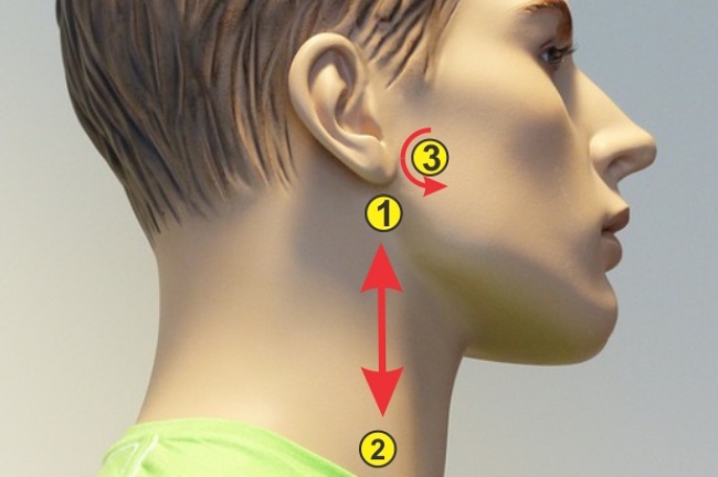 – Υψηλή αρτηριακή πίεση: Σημεία 1-2: Μην κάνετε μασάζ, ούτε να ασκείτε πιέσεις σε αυτό το σημείο. Αντ’ αυτού χαϊδέψτε πολύ απαλά. Κάντε σχεδόν ανεπαίσθητες κινήσεις με το χέρι σας από πάνω προς τα κάτω, αγγίζοντας απαλά με την άκρη των δακτύλων της. Επαναλάβετε 10 φορές από κάθε μεριά. Σημείο 3: Κάντε μασάζ σε αυτό το σημείο με την άκρη των δακτύλων σας για 1 λεπτό σε κάθε μεριά. Πιέστε αρκετά, αλλά όχι τόσο ώστε να νιώσετε πόνο. Η κατεύθυνση δεν έχει σημασία.
