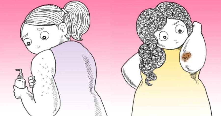Δέρμα κότας: Το δέρμα κότας ή Ketosis Pilaris, προκαλείται από την υπερβολική κερατίνη και είναι κάτι πολύ κοινό. Πολλοί άνθρωποι έχουν αυτά τα μικρά εξογκώματα στο πίσω μέρος στα μπράτσα ή τους μηρούς. Το WebMD εξηγεί ότι κερατίνη, η οποία προστατεύει το δέρμα από μολύνσεις και άλλα επιβλαβή πράγματα, μπορεί να συσσωρευτεί και να μπλοκάρει τους θύλακες των τριχών και να προκαλέσει τα μικρά αυτά εξογκώματα. Αν και είναι εντελώς ακίνδυνο, μπορείτε να μιλήσετε με το γιατρό σας σχετικά με τις λύσεις.