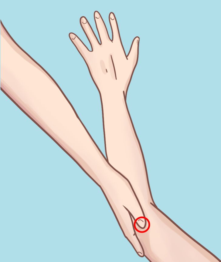 Λυγίστε τον αγκώνα, ασκήστε πίεση με τον αντίχειρά σας και κάντε μασάζ ή πιέστε το για ένα λεπτό. Αλλάξτε χέρι και επαναλάβετε την διαδικασία.
