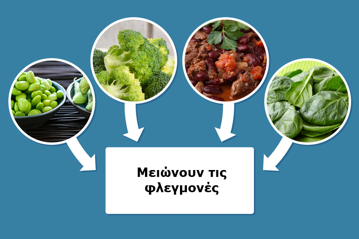 Η σόγια είναι επίσης ωφέλιμη. Έχει χαμηλή περιεκτικότητα σε λιπαρά και είναι πλούσια σε πρωτεΐνες και φυτικές ίνες, και περιέχει ωμέγα-3 λιπαρά οξέα που βοηθούν στον φλεγμονώδη πόνο.