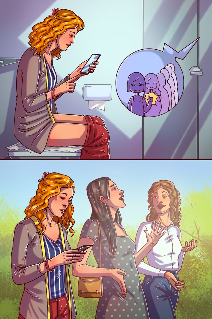 Επομένως, ο χρόνος χωρίς την απόσπαση προσοχής από το τηλέφωνό μας είναι απαραίτητος για το μυαλό μας, η απενεργοποίησή του για να επενδύσουμε χρόνο στον εαυτό μας είναι μερικές φορές ακριβώς αυτό που χρειαζόμαστε. Αυτό σημαίνει ότι η μεταφορά των τηλεφώνων μας στο μπάνιο αφαιρεί τα πολύτιμα διαλείμματα που χρειάζεται το μυαλό μας.