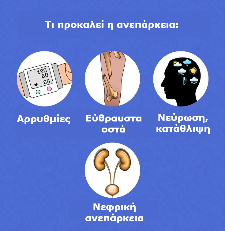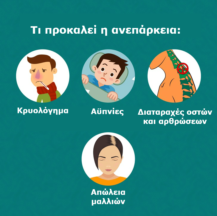Οι αιτίες για ανεπάρκεια βιταμίνης D είναι αρκετά απλοί: η έλλειψη ηλιακού φωτός, η μη ισορροπημένη διατροφή και το άγχος.