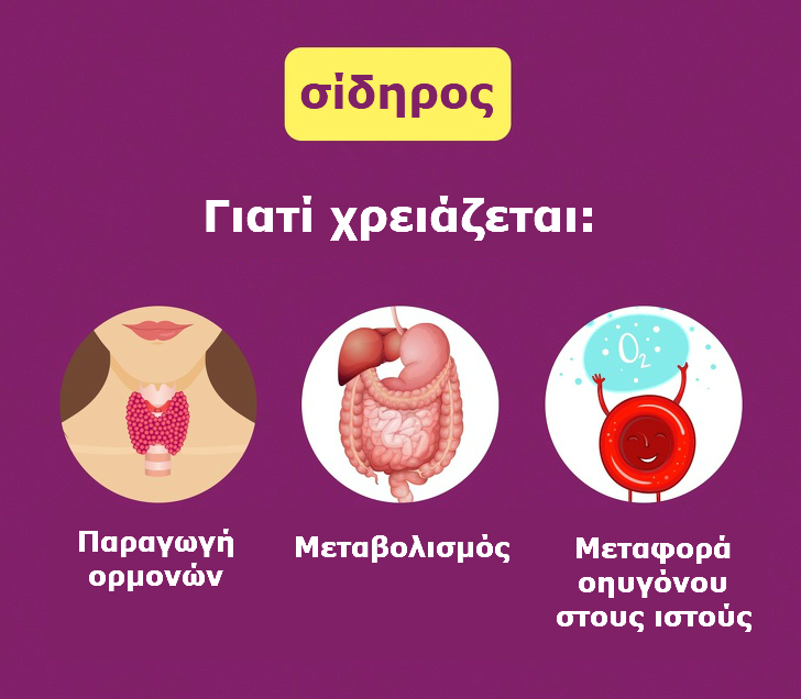 Πού μπορείτε να το λάβετε: 100 γραμμάρια στρειδιών περιέχουν 7 mg σιδήρου, 100 γραμμάρια βοδινού κρέατος έχουν 2,6 mg και 100 g συκωτάκι κοτόπουλου έχει 17 mg σιδήρου.
