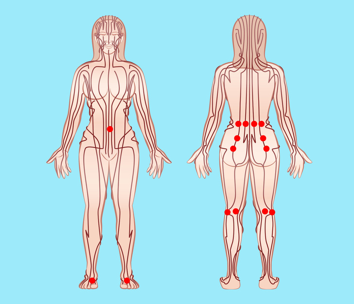 Ορισμένα σημεία βελονισμού για πόνο στην πλάτη βρίσκονται στο πίσω μέρος των γόνατων, στην μέση, τα πόδια, τους γοφούς και το στομάχι.