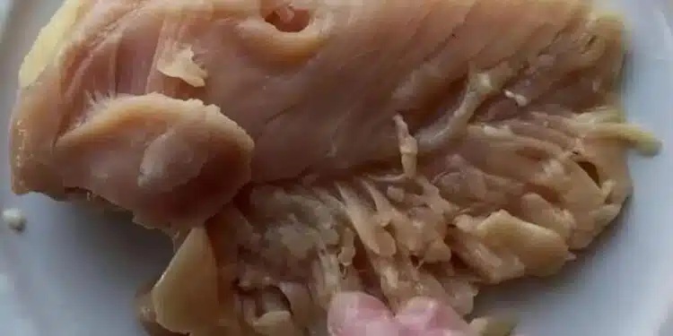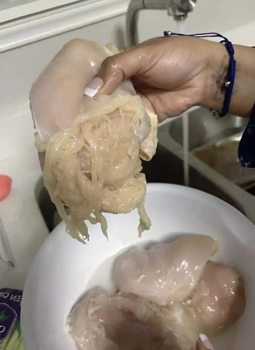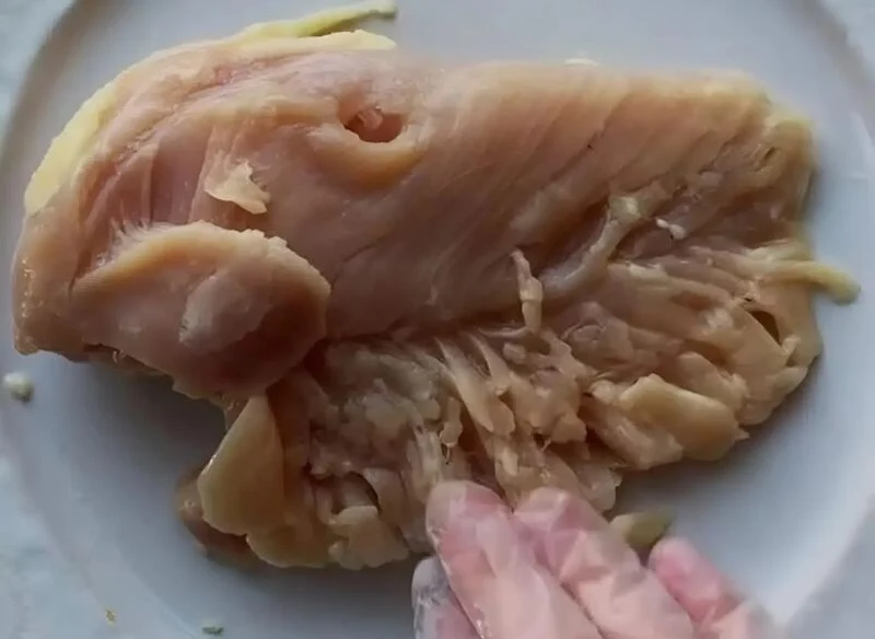 Κατά την προετοιμασία ενός συνηθισμένου οικογενειακού γεύματος, μια καταναλώτρια παρατήρησε ότι το φιλέτο κοτόπουλου, αντί να διατηρήσει τη φυσιολογική συμπαγή υφή του, διαλύθηκε σε λεπτές ίνες, θυμίζοντας περισσότερο μακαρόνια παρά ωμό κρέας. Η δημοσίευση φωτογραφίας στα κοινωνικά δίκτυα προκάλεσε πλήθος αντιδράσεων και εύλογα ερωτήματα, με πολλούς να αναρωτιούνται: “Τι είναι αυτό που αγοράσαμε; Είναι φυσιολογικό;”. Οι ειδικοί αναγνωρίζουν το φαινόμενο ως Spaghetti meat, γνωστό στα ελληνικά και ως “σπαγγετοποίηση”, δηλαδή μια ανωμαλία της δομής των μυϊκών ινών που οδηγεί στη χαρακτηριστική αποσύνθεσή τους.