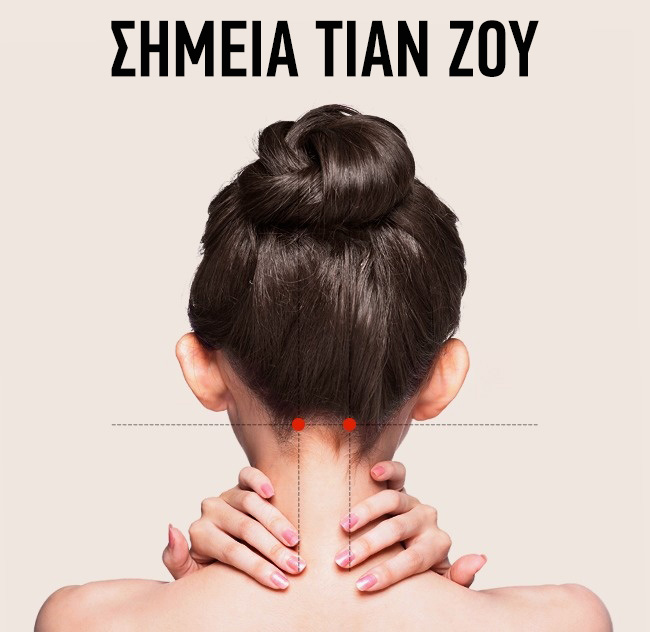 Τα σημεία αυτά βρίσκονται 2-3 εκατοστά από την γραμμή των μαλλιών στους κροτάφους. Νιώστε ένα μικρό λακκάκι για να βρείτε το σημείο. Η πίεση που εφαρμόζεται σε αυτό το σημείο ανακουφίζει τον πόνο από τους κροτάφους και τα μάτια.