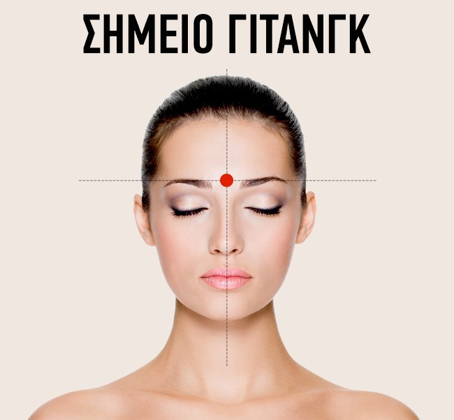 Το σημείο του τρίτου ματιού ή γιτάνγκ, βρίσκεται ανάμεσα στα φρύδια στο σημείο που η γέφυρα της μύτης περνάει στο μέτωπο. Αυτό το σημείο είναι υπεύθυνο και για την απομάκρυνση της κόπωσης των ματιών.