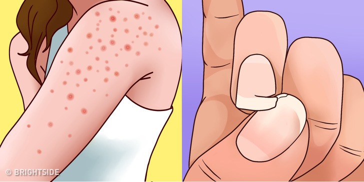 – Προβλήματα δερματολογικά και νυχιών: Η κερατοποίηση μαλλιών και η ερπητοειδής δερματίτιδα είναι 2 δερματικές παθήσεις που σχετίζονται άμεσα με τη δυσανεξία στη γλουτένη. Τα συμπτώματα περιλαμβάνουν φαγούρα και εξανθήματα που μπορεί να εμφανιστούν στα χέρια, τον κορμό, το πρόσωπο, τους γλουτούς, τους αγκώνες και τη γραμμή των μαλλιών. Ένα άλλο σύμπτωμα είναι εξασθενημένα και εύθραυστα νύχια. Άλλοι ερεθισμοί του δέρματος όπως το μιμητικό έκζεμα μπορούν να σηματοδοτήσουν δυσανεξία από γλουτένη.