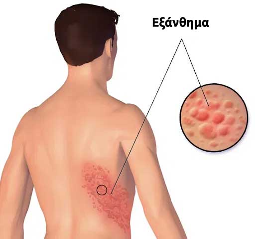 Τα συμπτώματα που περιγράφονται (εξάνθημα, πόνος, φαγούρα, πυρετός κ.ά.) είναι τυπικά.