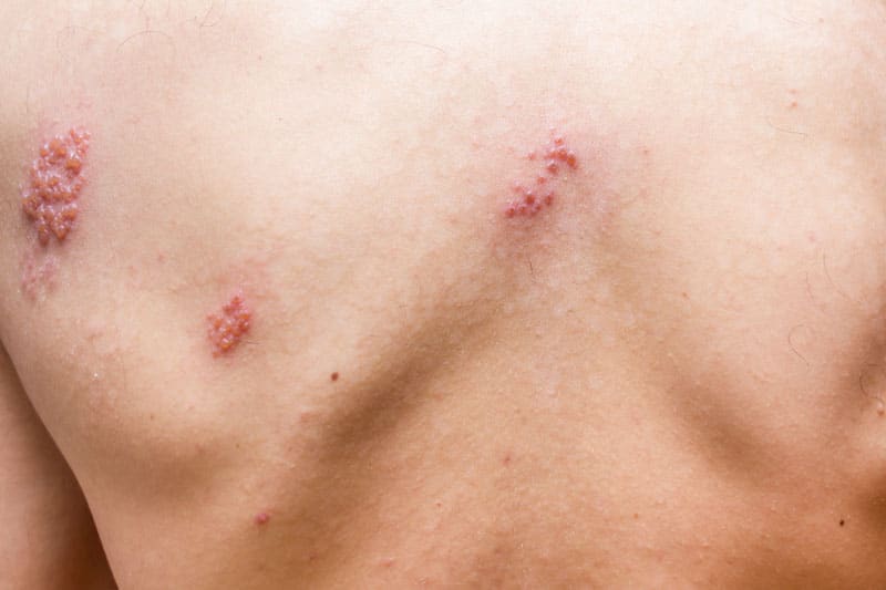 Ο έρπητας ζωστήρας συνήθως επηρεάζει μόνο τη μία πλευρά του σώματος. Συχνά εμφανίζεται ως μια επώδυνη ζώνη από φυσαλίδες με υγρό στο στήθος, τον αυχένα ή το πρόσωπο.