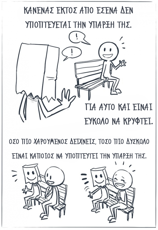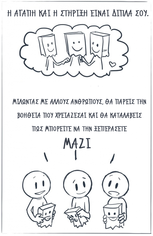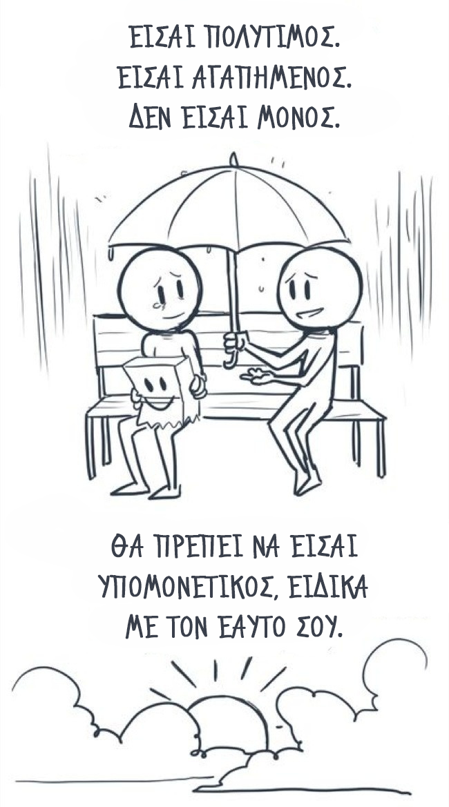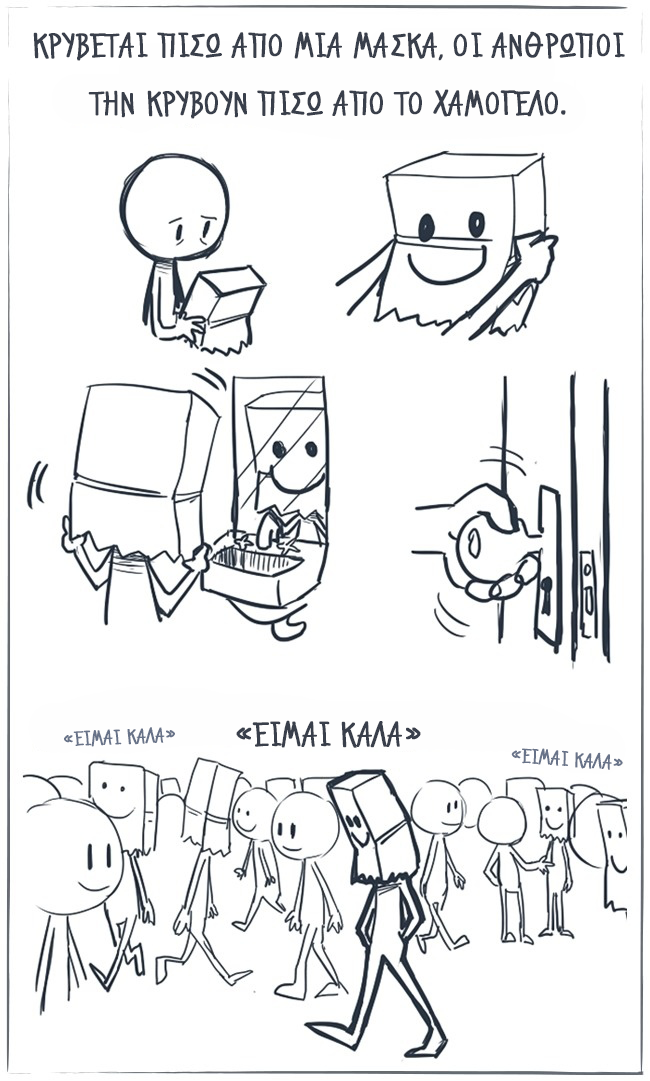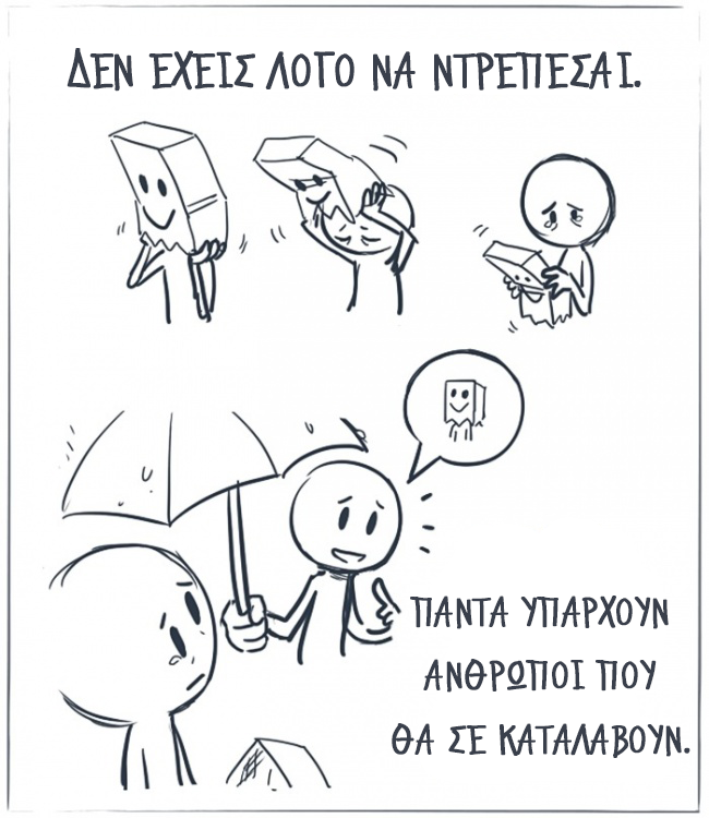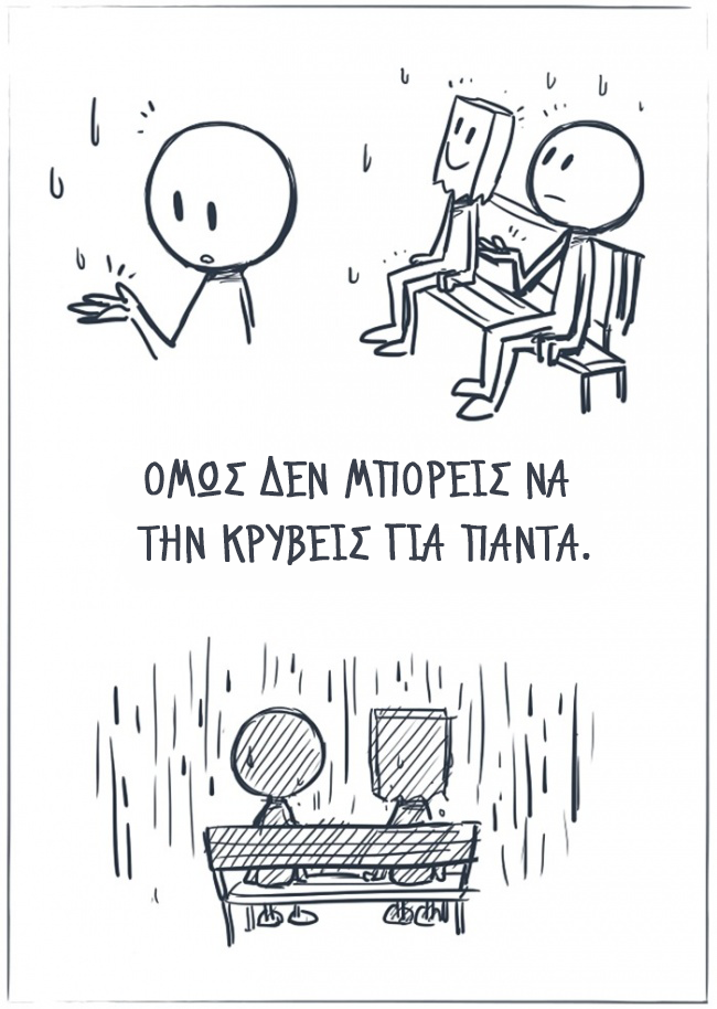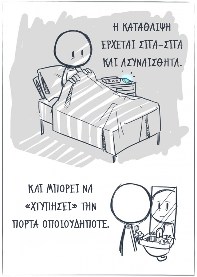 Ακολουθούν σκίτσα του Κόλιν Μπάτερς (σ.σ. στην αγγλική γλώσσα, Colleen Butters) μέσα από μία σειρά σκίτσων για την κατάθλιψη: