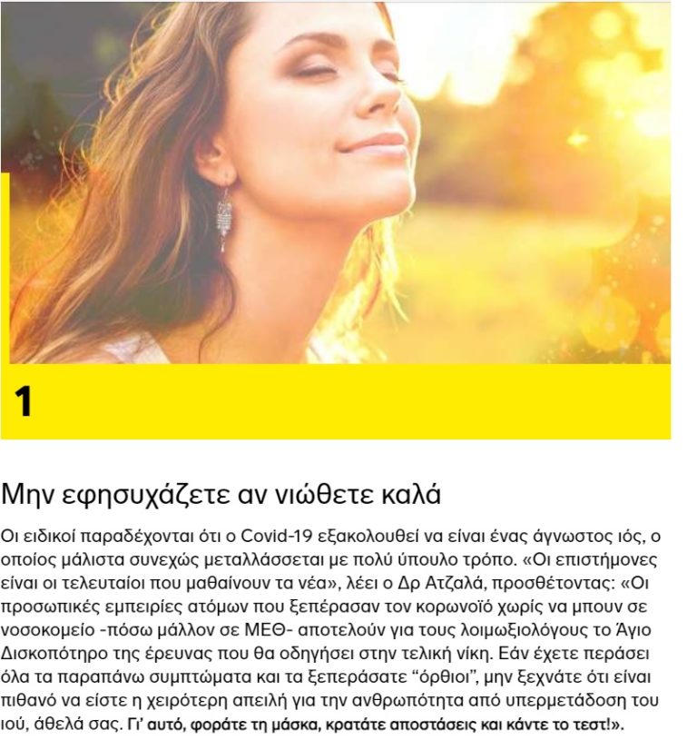 Ο Δρ Άμες Ατζαλά, παθολόγος-λοιμωξιολόγος και επικεφαλής ερευνητής στο Πανεπιστήμιο Τζον Χόπκινς, προσθέτει: «Δυστυχώς, δεν υπάρχει τρόπος να μάθουμε με 100% βεβαιότητα εάν αυτά τα συμπτώματα που αντιμετωπίσατε τον περασμένο χειμώνα ήταν Covid-19 ή εάν επρόκειτο για μια τυχαία ασυμπτωματική περίπτωση. Ωστόσο, υπάρχουν ορισμένα σημάδια που υποδεικνύουν σαφώς ότι μολυνθήκατε από τον κορονοϊό. Όμως, ευτυχώς για εσάς, το ξεπεράσατε χωρίς να το αντιληφθείτε».