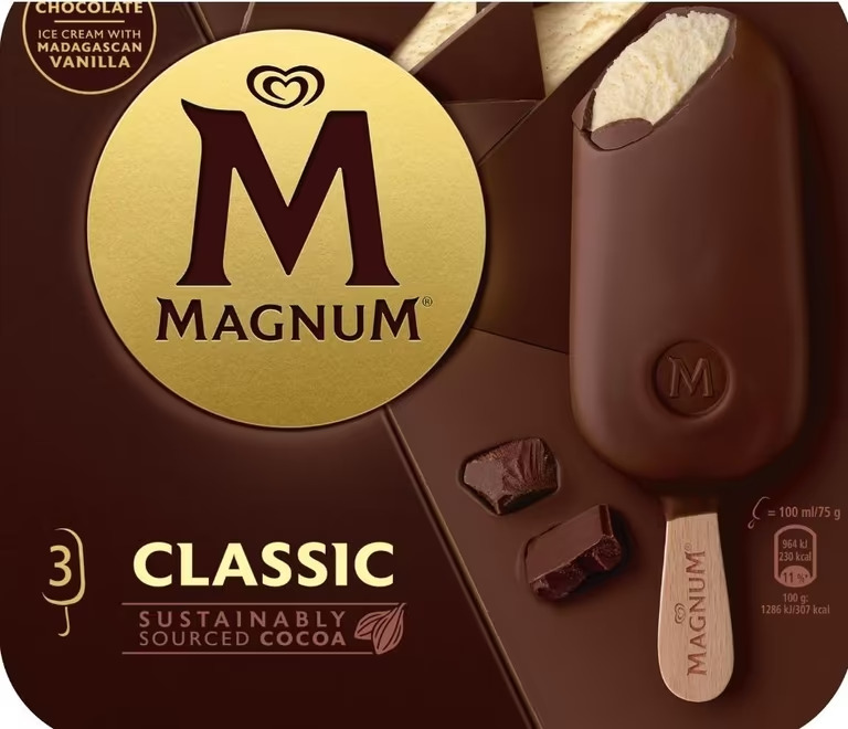 Σύμφωνα με την επίσημη ανακοίνωση της Βρετανικής Υπηρεσίας Τροφίμων (FSA), η Unilever ανακάλεσε τα Magnum Classic Ice Cream Sticks (3x100ml), καθώς υπάρχει πιθανότητα να περιέχουν κομμάτια μετάλλου, κάτι που καθιστά τα προϊόντα αυτά ακατάλληλα για κατανάλωση. Η προειδοποίηση αφορά τις παρτίδες με κωδικούς L3324, L3325, L3326, L3327 και L3328, οι οποίες φέρουν ως ημερομηνία λήξης τον Νοέμβριο του 2025.