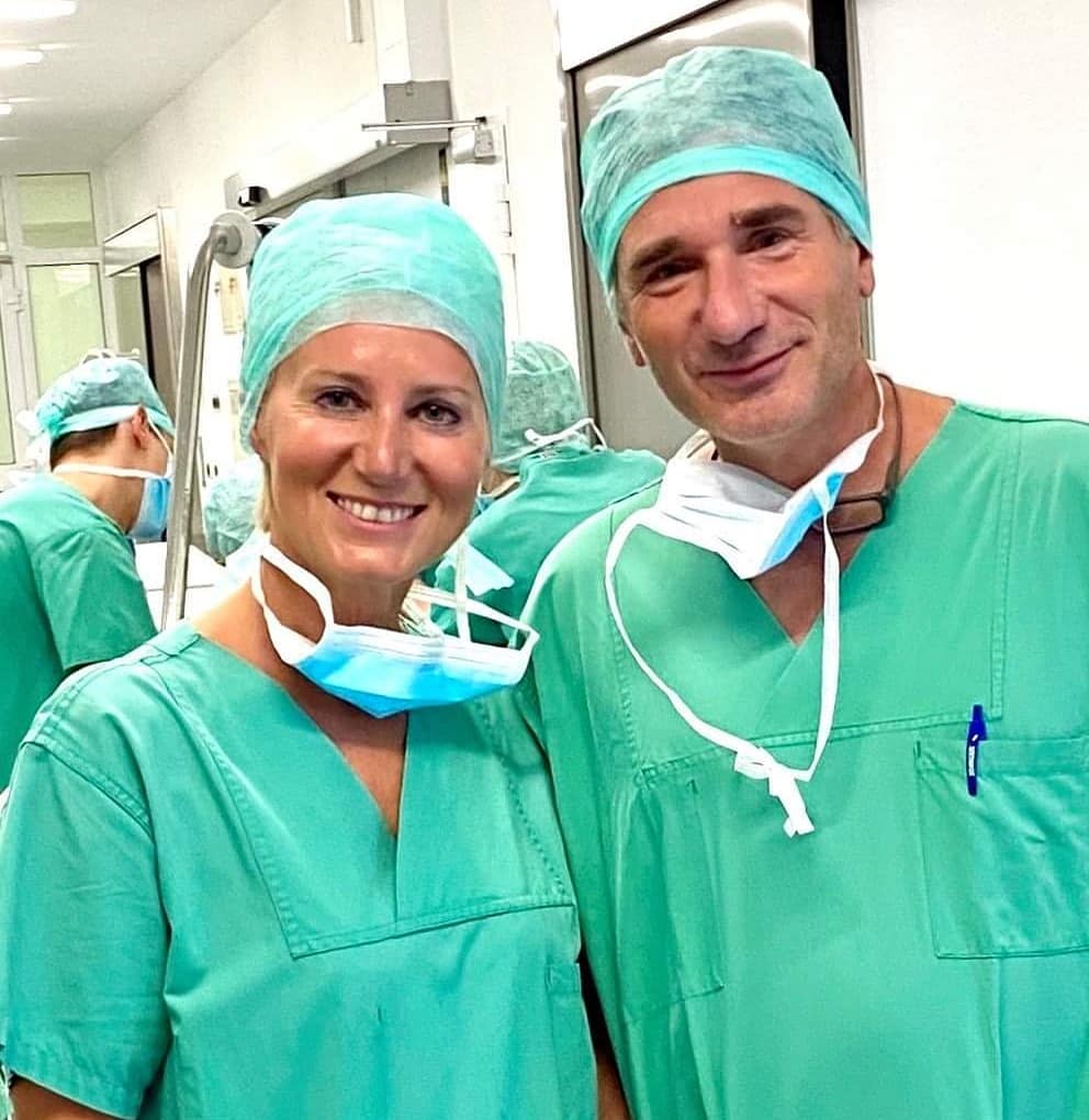 “Μετά από πολλές ώρες χειρουργείο με τον καθηγητή Dr Stefan Paepke, Women’s Health Clinic, Klinikum Rect der Isar, Technical University of Munich”, ήταν η λεζάντα που συνόδευε τη φωτογραφία τους.