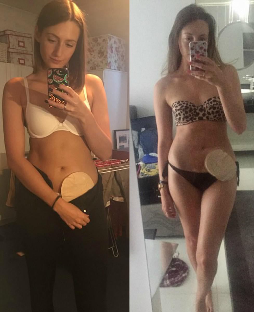 Πριν από 11 χρόνια η κοπέλα πήγαινε στην τουαλέτα περισσότερες από 25 φορές την ημέρα με διάρροιες, εμετούς, αιμορραγίες και κράμπες στο στομάχι. Είχε χάσει πάρα πολύ βάρος και είχε έλλειψη καλίου εξαιτίας των εμετών. Μέχρι που έφτασε στα πρόθυρα να πεθάνει, όπως της είπαν οι γιατροί.
