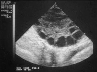 Κατά το υπερηχογράφημα σύνηθες εύρημα είναι οι πολυάριθμες μικρές κύστες περιφερειακά στην ωοθήκη. Επίσης βρίσκουμε συνήθως ένα παχύ ενδομήτριο (εσωτερική επένδυση της μήτρας) λόγω της άστατης εμμηνορρυσίας.