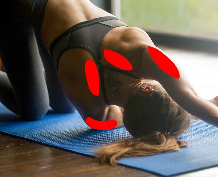 Αυτό το τέντωμα απελευθερώνει την ένταση στην άνω πλάτη και μεταξύ των ωμοπλάτων. Όλες οι κινήσεις πρέπει να είναι ομαλές και απαλές.