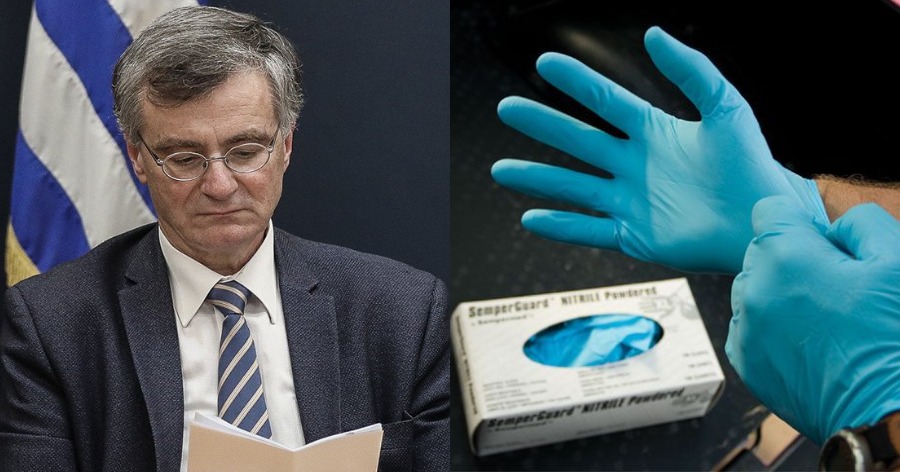Συγκεκριμένα, στη χθεσινή ενημέρωση από το υπουργείο Υγείας, ο κ. Τσιόδρας αναφέρθηκε και στα γάντια μιας χρήσης, που πολλοί χρησιμοποιούν εκτός σπιτιού για προστασία από τον κορονοϊό και κατέστησε σαφές πως αυτό μπορεί να αποδειχθεί ακόμη πιο επικίνδυνο και από το να μη φορά κανείς τίποτα στα χέρια του.