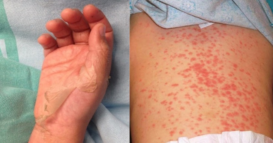 Δέρμα που ξεφλουδίζει ή/και δημιουργεί φολίδες, ιδιαίτερα στις παλάμες των χεριών και τα πέλματα των ποδιών