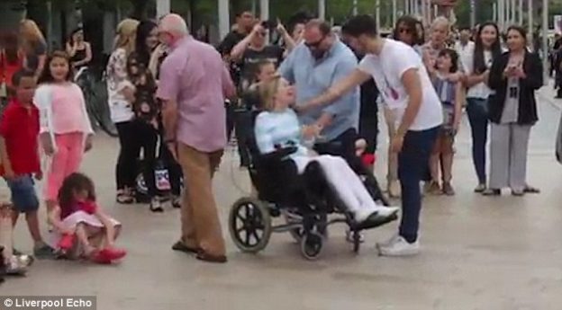 Κάπως έτσι γράφτηκε αυτή η συγκινητική μελωδική ιστορία έξω από μεγάλο εμπορικό κέντρο στο Λίβερπουλ της Αγγλίας.