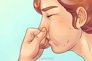 Πιάστε τη μύτη σας με τον αντίχειρα και το δείκτη, κλείνοντας το στόμα και τα μάτια σας.